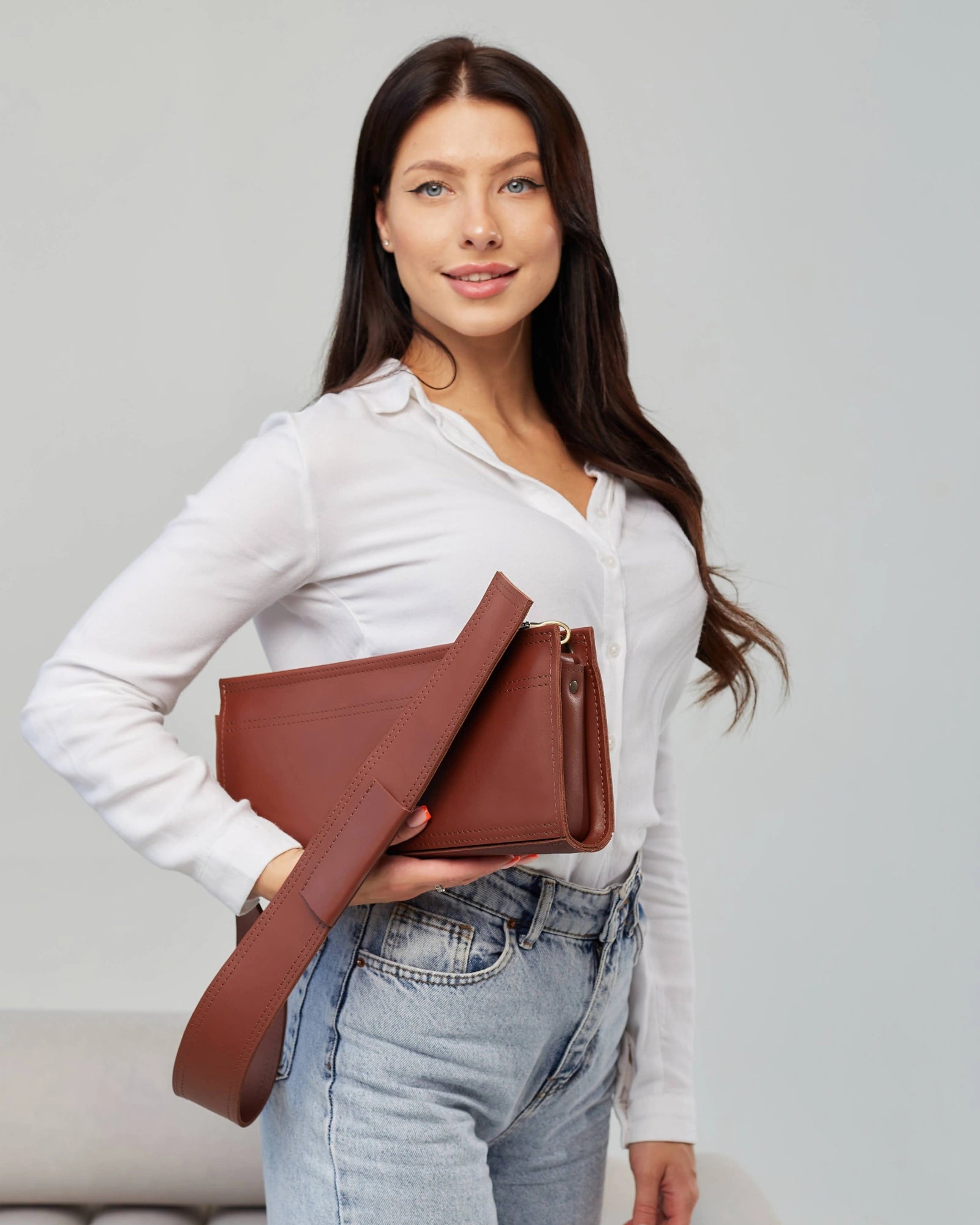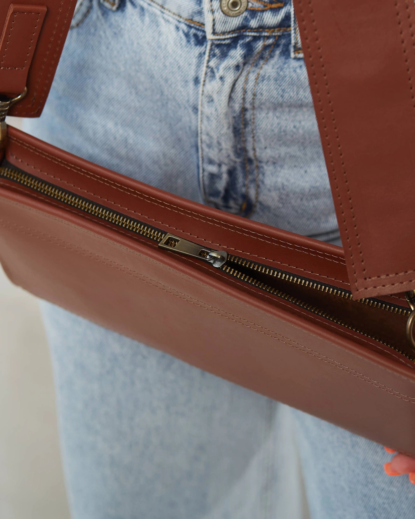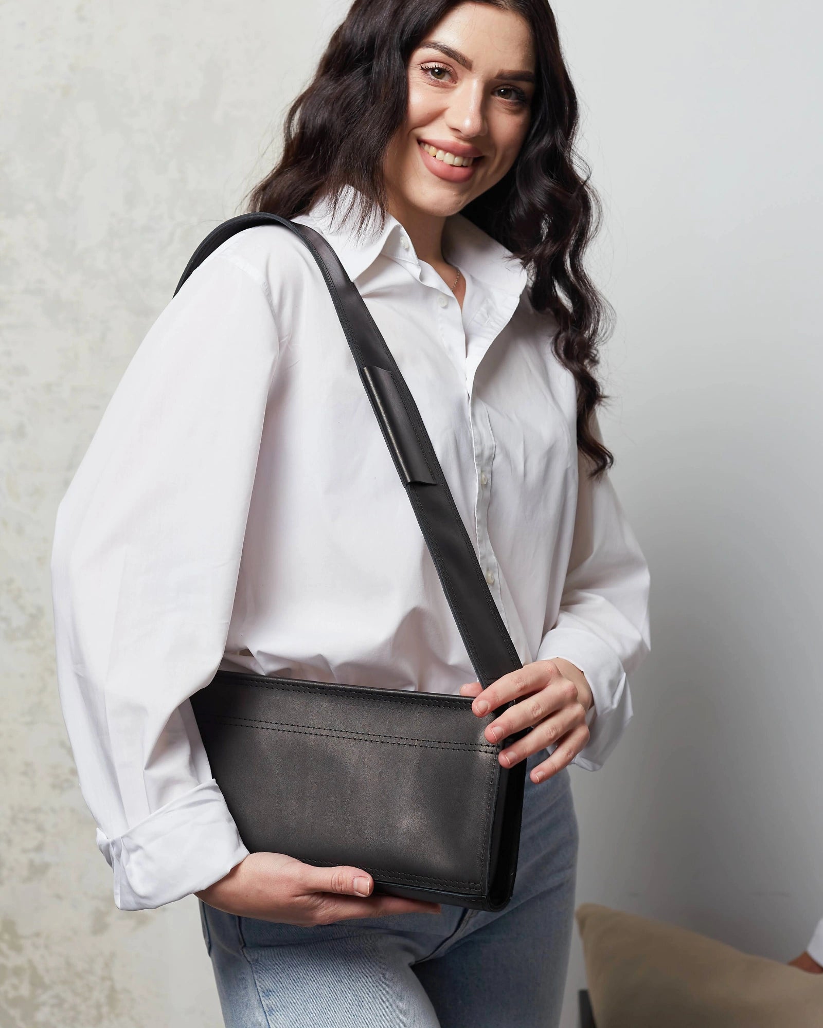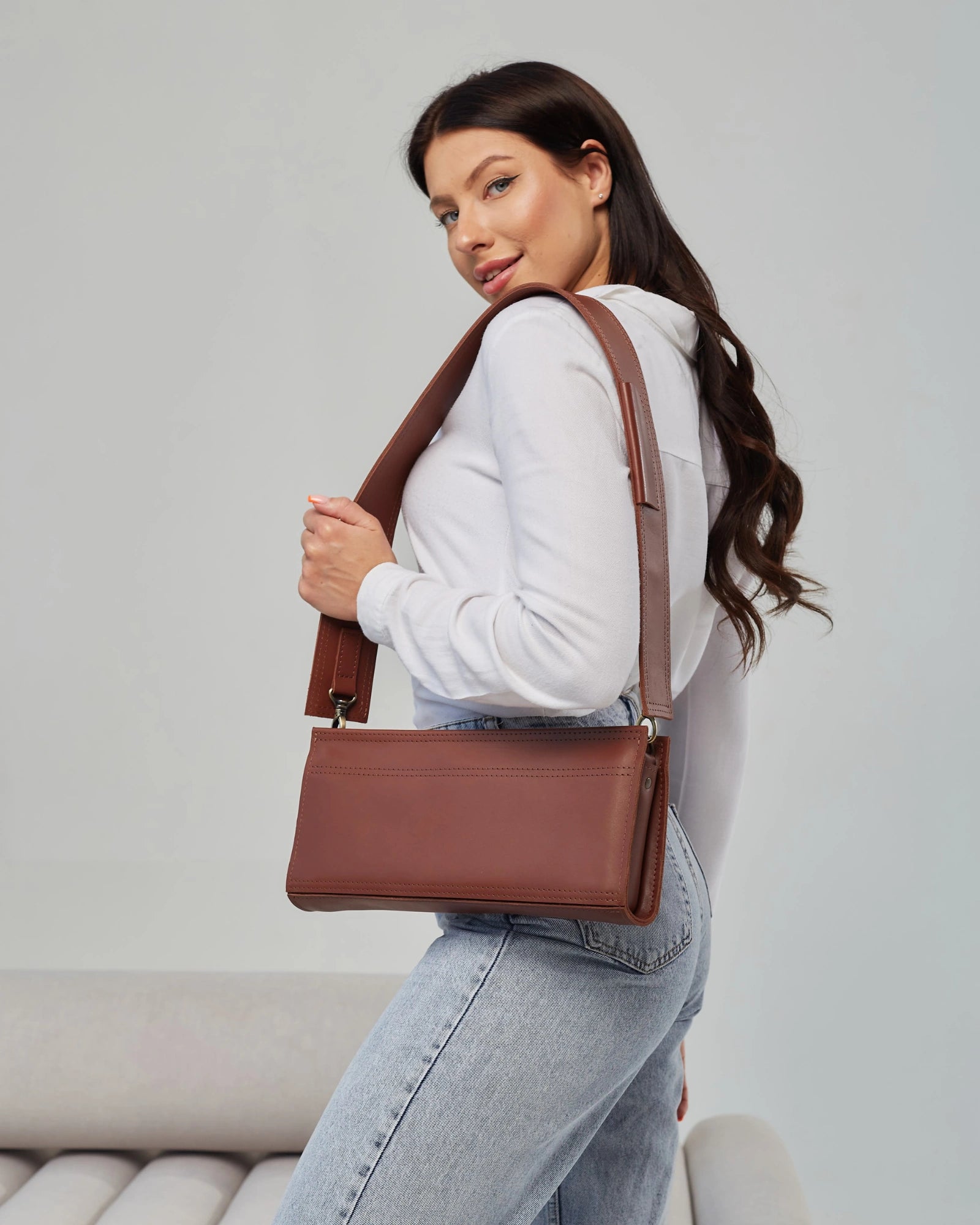 The Grace leather baguette bag for women is a handmade shoulder handbag with a long, structured silhouette. Holds its shape beautifully — a stylish piece and a perfect gift. 🤎